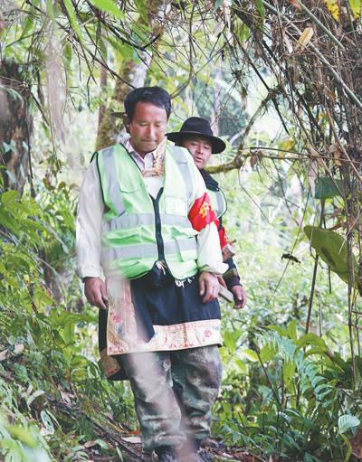 墨脱镇巴日村护林员在密林中巡护。邓建胜摄