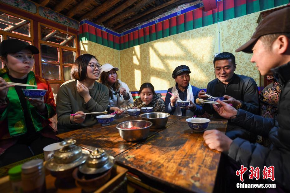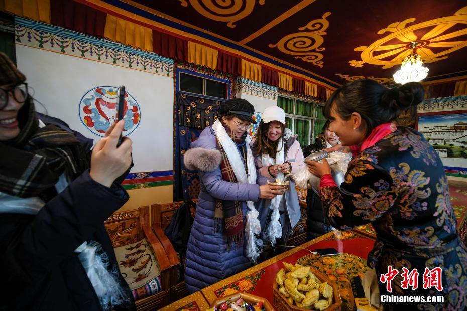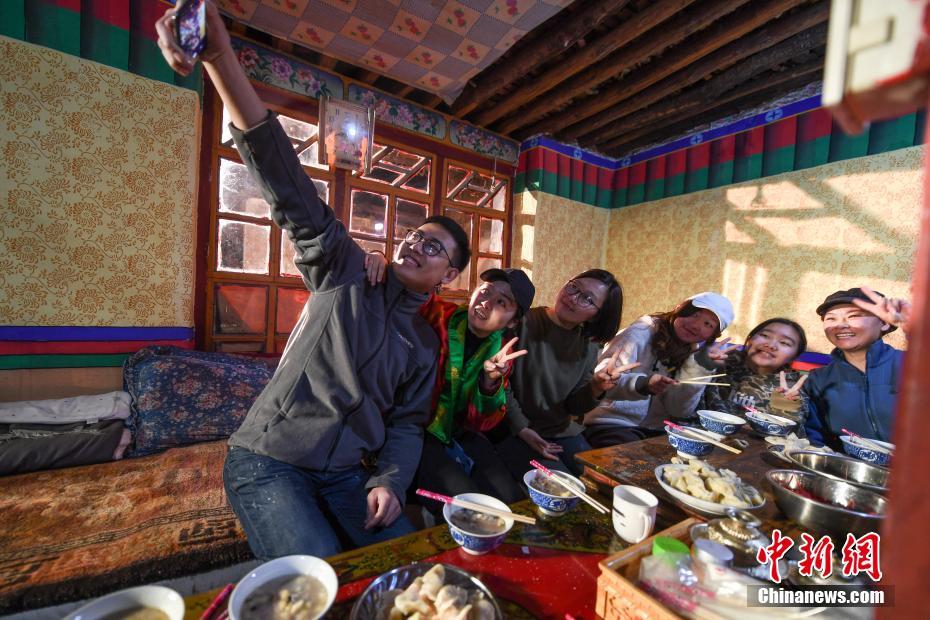 2月3日是藏历12月29日,藏族民众迎来藏历新年传统的“古突”之夜。当日,在拉萨市城关区夺底乡维巴村的“好客藏家”德吉的家中,来自辽宁、山东等地的9名游客与德吉一同度过“古突”之夜,体验藏历新年。据了解,按照藏民族传统习俗,每年藏历12月29日,藏族民众都要食用一种面疙瘩粥即“古突”,里面包裹了九种物什,各自代表不同的寓意。例如:羊毛代表心肠好、善良,辣椒代表“刀子嘴豆腐心”等。饭后,男主人会手持火把转遍屋子,再将火把丢到门外,放鞭炮烟花,辞旧迎新。文/何蓬磊 张伟 图/何蓬磊