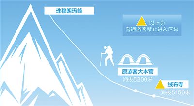 珠峰管理局副局长格桑介绍,此次主要针对的是普通游客,原来海拔5200米的游客大本营被撤至海拔5150米的绒布寺一带。