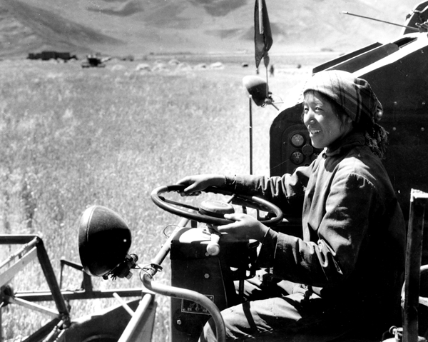 西藏第一代藏族女联合收割机手次仁拉姆