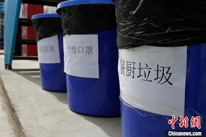 图为工地隔离区的分类垃圾箱。赵朗 摄
