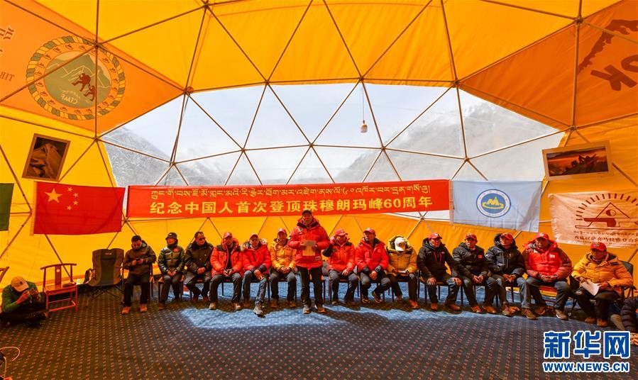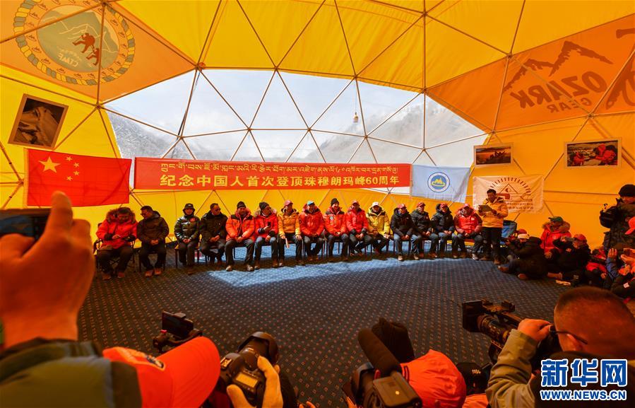 5月11日,中国人首次登顶珠穆朗玛峰60周年座谈会暨庆祝西藏登山队成立60周年座谈会,在海拔5200米的珠峰大本营举行。