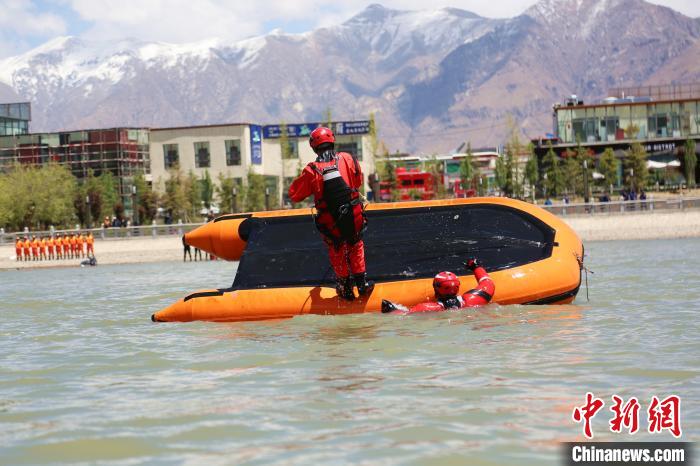 图为救援人员演示翻船自救。拉萨市消防救援支队 供图