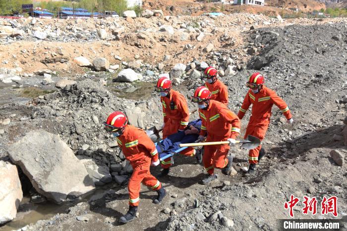 图为救援人员转运救出的被困人员。拉萨市消防救援支队 供图