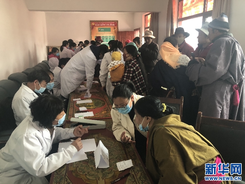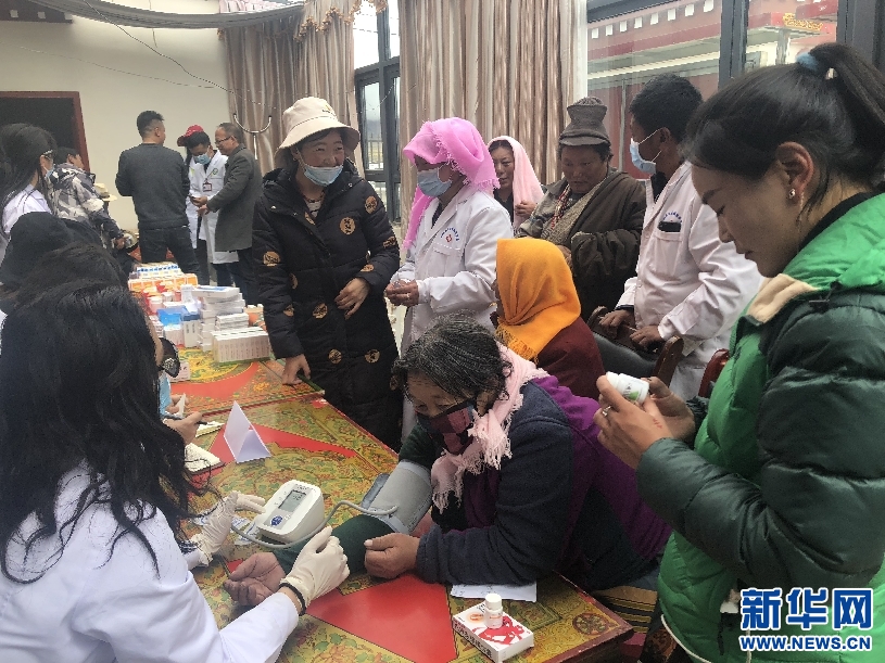 援藏医生为村民量血压 新华网发 王宇翀 摄