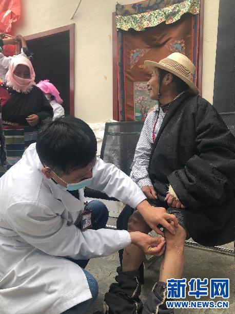 援藏医生为贡布云旦针灸治腿 新华网发 王宇翀 摄