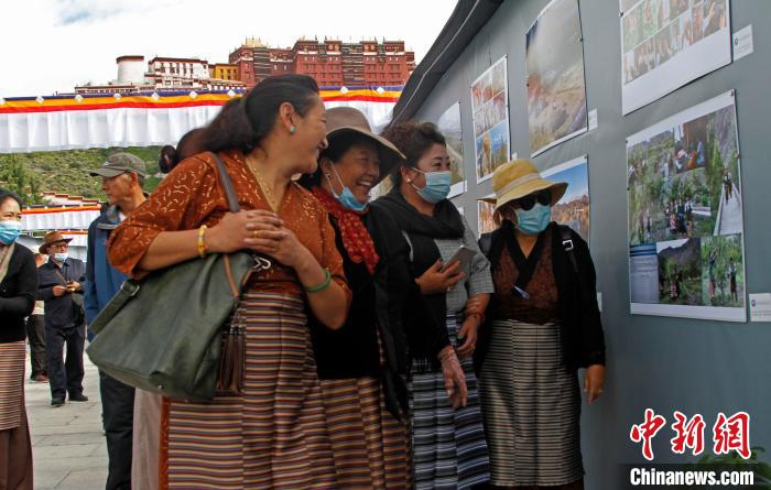 第十三届西藏珠穆朗玛摄影大展——西藏自治区脱贫攻坚专题展21日在拉萨布达拉宫广场举行。