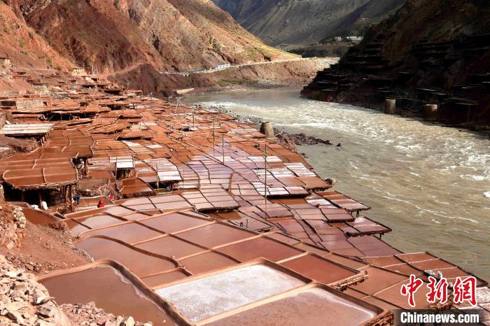 10月21日,“同饮一江水、共话澜湄情”2020澜湄万里行的中外媒体,在西藏自治区昌都市芒康县纳西乡盐田采访。当地盐田犹如少女的眼影盒,分布在澜沧江两岸,其采盐历史悠久,民众从井内取卤水,经过系列工艺后,将盐销往各地,成为重要经济来源。2020澜湄万里行由青海、西藏、云南三省区党委宣传部联合主办,青海省政府新闻办公室、中新社青海分社承办。
