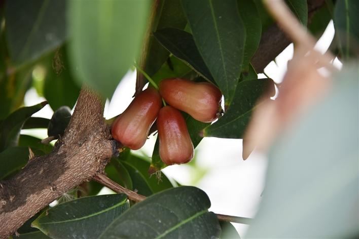 经过3年精心培育和管护,记者看到眼前的莲雾、菠萝、火龙果长势喜人。忍不住摘一颗莲雾放进嘴里,清香的汁液让人忍不住大赞一句:“太好吃了!”