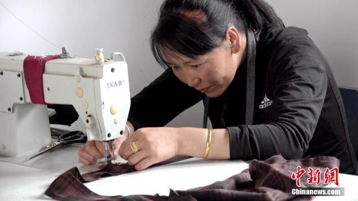 资料图:拉萨首个“社区工厂”为不少城市留守妇女提供就业岗位,让她们实现增收。 中新社记者 贡桑拉姆 摄