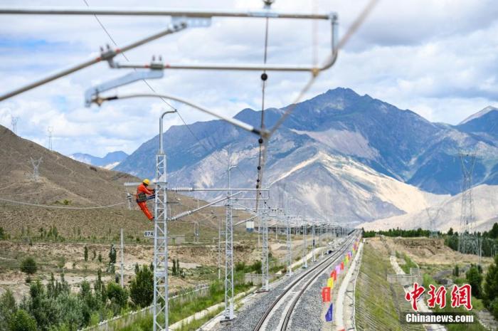 资料图:川藏铁路拉萨至林芝段接触网专业首件工程在西藏山南市扎囊至扎其区间成功建成。 中新社记者 何蓬磊 摄