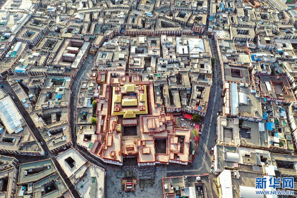 鸟瞰拉萨八廓街(2019年8月10日摄)。新华社记者 普布扎西摄