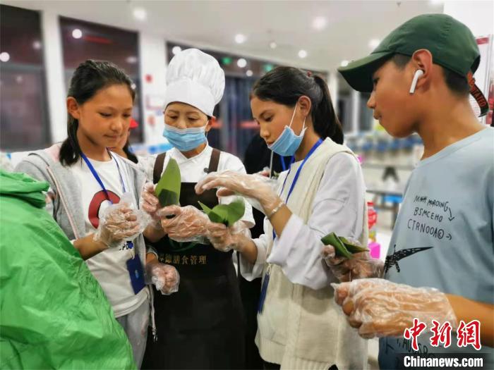 西藏加查县中学学生赴宜昌开展研学旅行,学习包粽子(资料图) 湖北省援藏办供图
