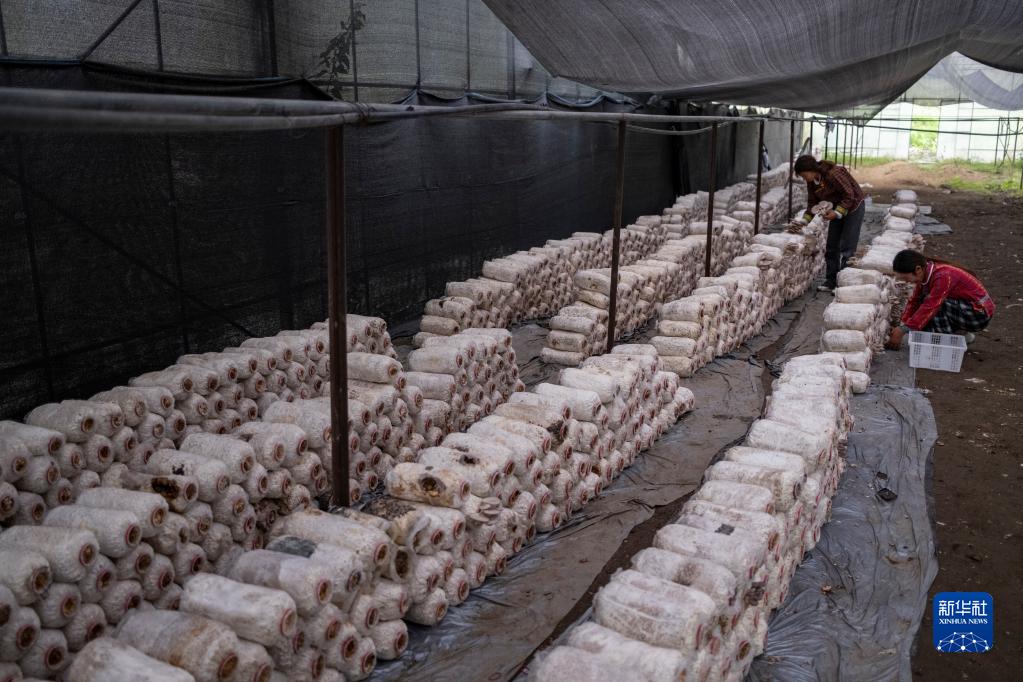 姐妹俩种植的平菇(4月14日摄)。新华社记者 孙非 摄
