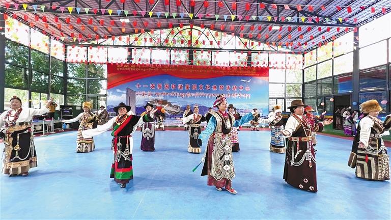 图为拉萨市城关区吉崩岗街道开展“奋进新时代 启航新征程 喜迎二十大”庆“七一”主题活动。这是吉崩岗街道策门林社区带来的舞蹈表演。记者 潘多 张遂 摄