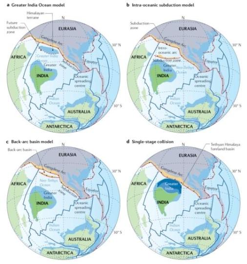目前,关于新特提斯洋闭合历史的假说包括大印度洋盆模型、洋内俯冲模型和单阶段俯冲碰撞模型,这些模型都是基于丁林院士团队等发现的关键证据——即印度-欧亚大陆碰撞形成的前陆盆地,该盆地在6500万年至5900万年前开始接受来自冈底斯岛弧区的物源,表明此时印度-欧亚大陆已经开始碰撞,大大早于此前国际公认的印度与欧亚大陆在5000万年前才初始碰撞的时间。