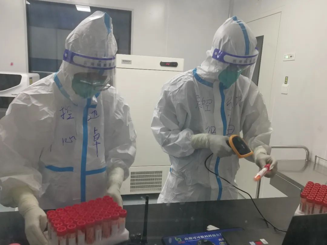 图为强巴次仁(右)在PCR分子生物实验室做核酸检测