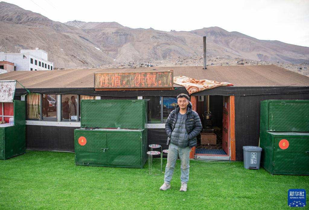 旦增在自家的帐篷旅馆前(5月13日摄)。新华社记者 孙非 摄