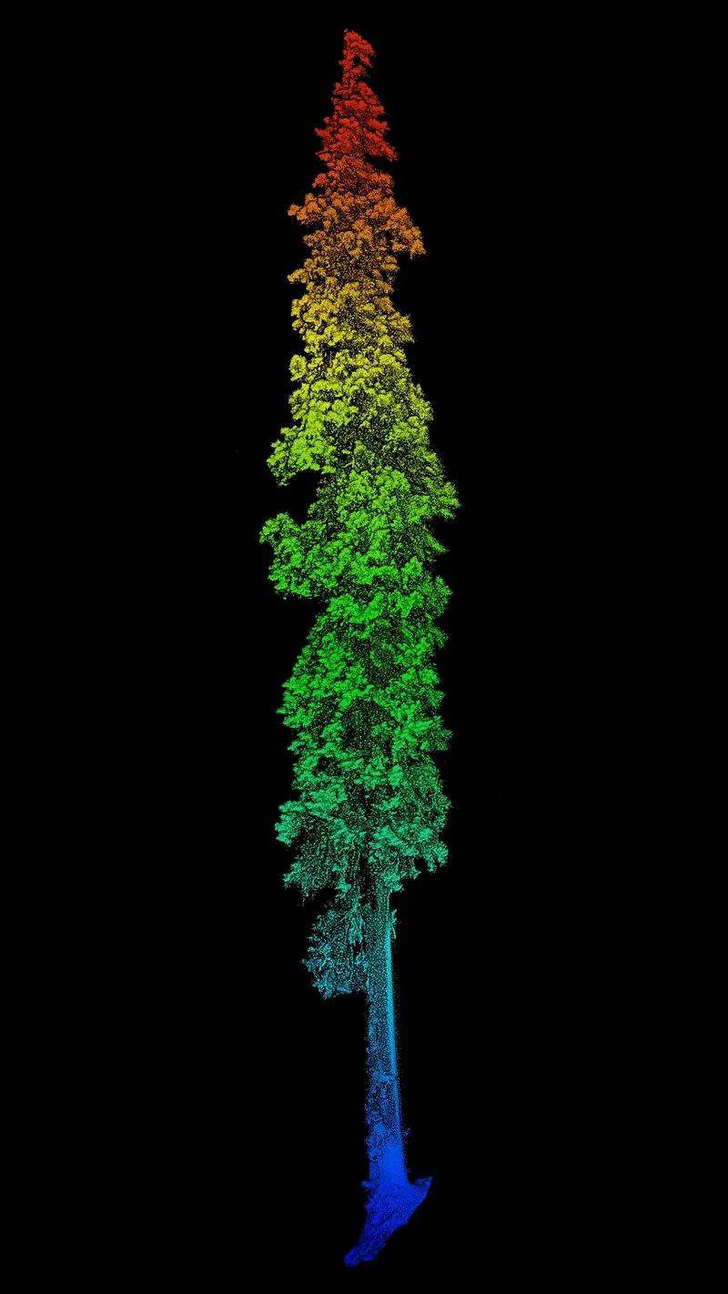 通过无人机与背包激光雷达相结合,对西藏柏木巨树聚生区域进行精准测量,得到了巨树群的精准三维点云模型。经过高度测量,发现其中一棵西藏柏木高达102.3米,该发现同时刷新了中国与亚洲的最高树纪录,跻身按树种排名的世界最高树列表,位列第二。研究团队获取了该树的精细三维点云数据,测量其胸径为293厘米,并采用无人机摄影的方式获取了巨树等身照。