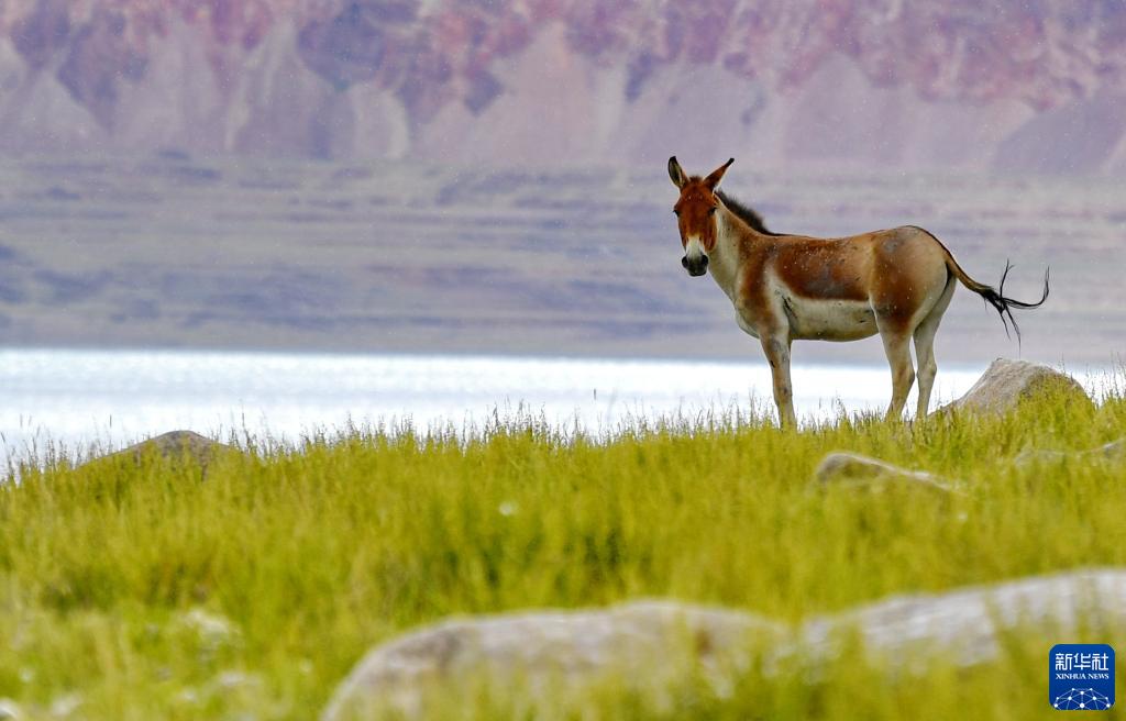 扎日南木错湖畔的藏野驴(8月19日摄)。新华社记者 张汝锋 摄