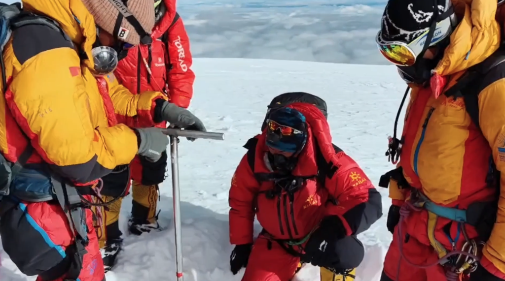 10月1日上午9时15分,第二次青藏科考卓奥友峰极高海拔综合科考队成功登顶8201米顶峰,并完成了冰芯钻取与雪冰样品采集,这是我国首次获取卓奥友峰冰芯和梯度雪冰样品。
