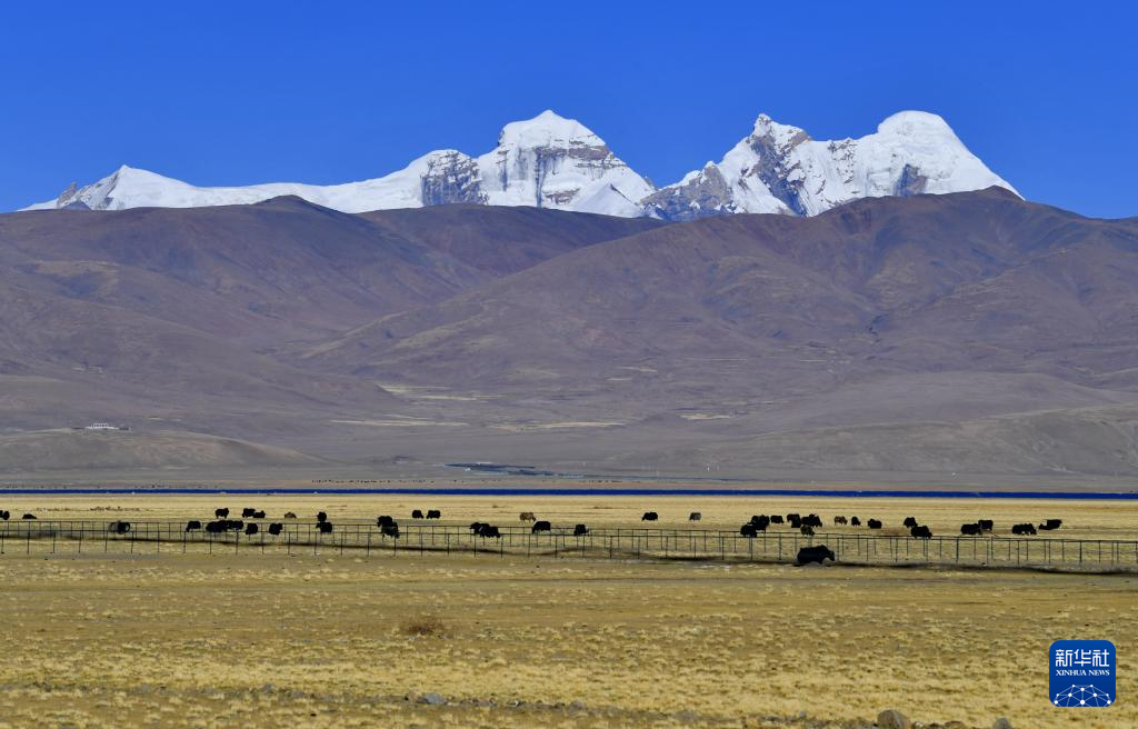哲古景区雪山脚下的天然牧场(10月25日摄)。新华社记者 张汝锋 摄