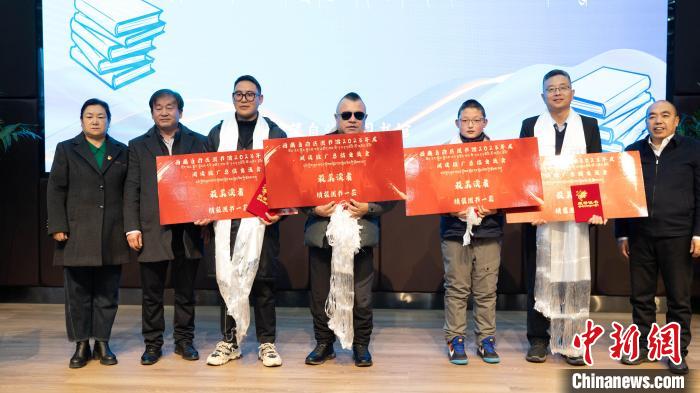 图为西藏自治区图书馆2023年度阅读推广总结交流会上,对4名年度“最美读者”进行表彰。西藏自治区图书馆供图。