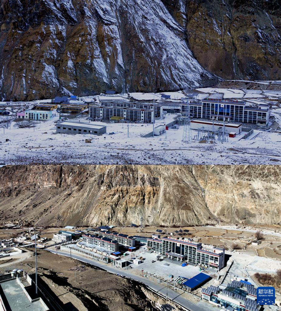 拼版照片:上图是2019年1月8日拍摄的楚鲁松杰乡政府(新华社记者陈尚才摄);下图是2024年1月13日拍摄的楚鲁松杰乡政府(新华社记者陈泽鹏摄)。