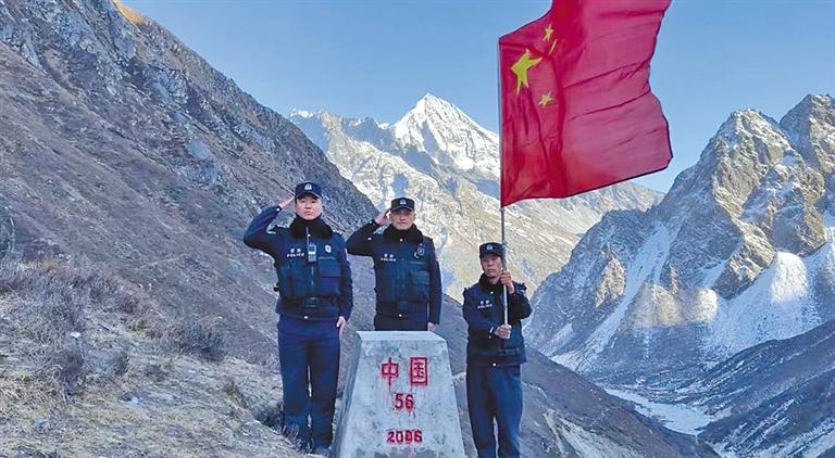 升国旗、巡逻踏查、界碑(桩)描红……每年春节、藏历新年,坚守岗位的支队民警都会以这种特有的方式,喜迎佳节,表达对祖国的祝福,践行“边境有我,请祖国放心”的铮铮誓言。