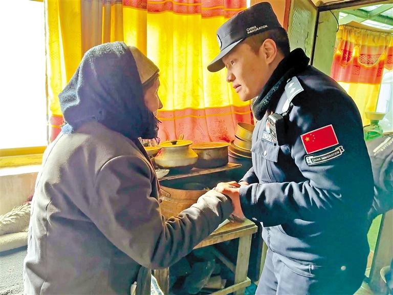 日喀则边境管理支队聂拉木边境派出所民警慰问辖区孤寡老人。通讯员 付玲利 摄