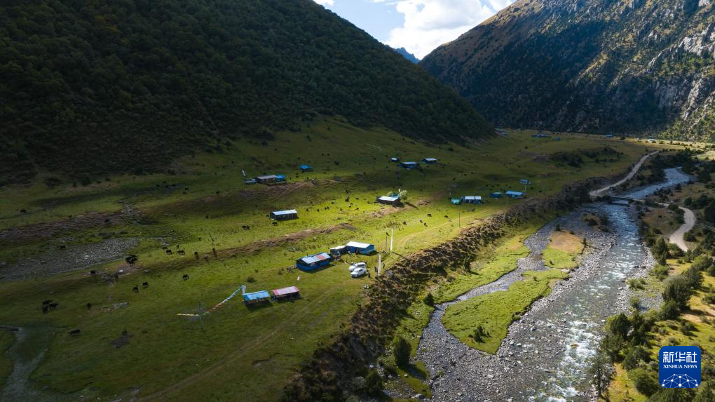 贡乔热旦家夏季牧场的全貌(无人机照片,9月4日摄)。新华社记者 丁增尼达 摄