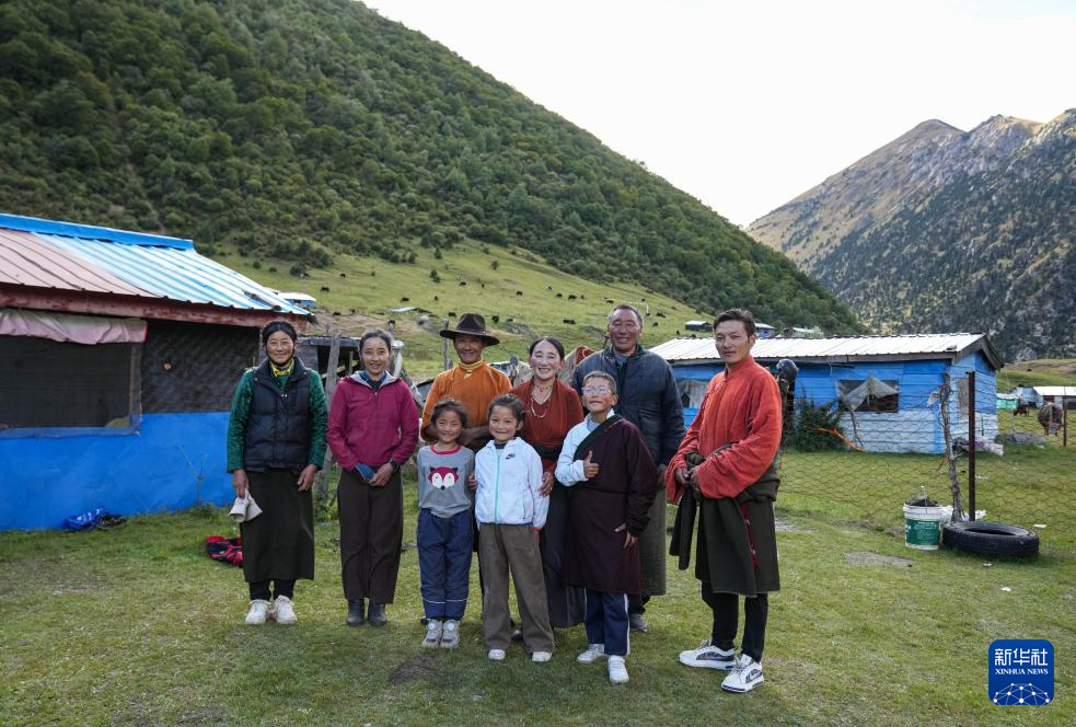贡乔热旦和家人在夏季牧场合影(9月4日摄)。新华社记者 晋美多吉 摄