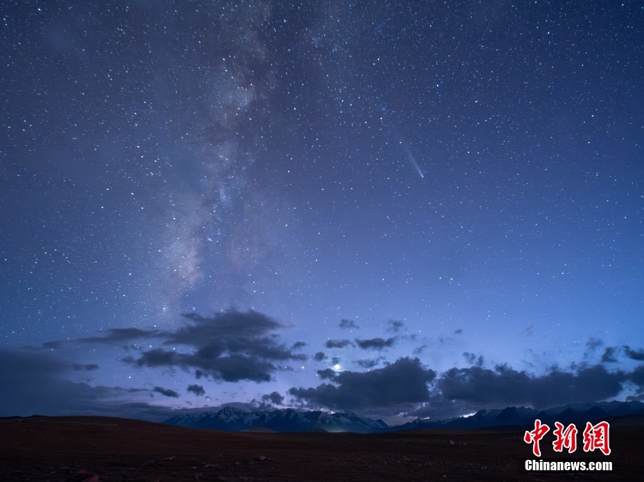 10月23日晚,紫金山—阿特拉斯彗星与银河以及金星(画面下方)同框出现在西藏羊八井上空。紫金山—阿特拉斯彗星(CometTsuchinshan—ATLAS,彗星编号C/2023A3)于2023年初由中国科学院紫金山天文台首次发现,近日该彗星连续在西藏天空“登场”。