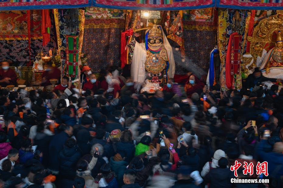 12月15日即藏历十月十五日是藏族传统的节日“白来日追”,俗称“仙女节”、“白拉姆节”等。相传藏传佛教最高护法神之一班丹拉姆的女儿白拉姆,不顾母亲的反对与赤尊赞私定终身,班丹拉姆一怒之下将赤尊赞赶到拉萨河南岸,规定二人仅每年的藏历十月十五日相见。图为工作人员将青稞酒倒入女神白拉姆像前的酒坛。