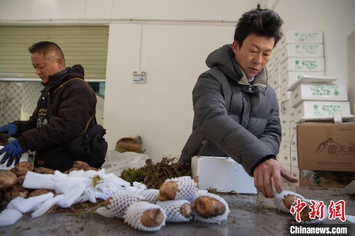 12月18日,在西藏自治区林芝市波密县高原藏天麻产业开发有限公司,工作人员在包装藏天麻。中新社记者 贡嘎来松 摄