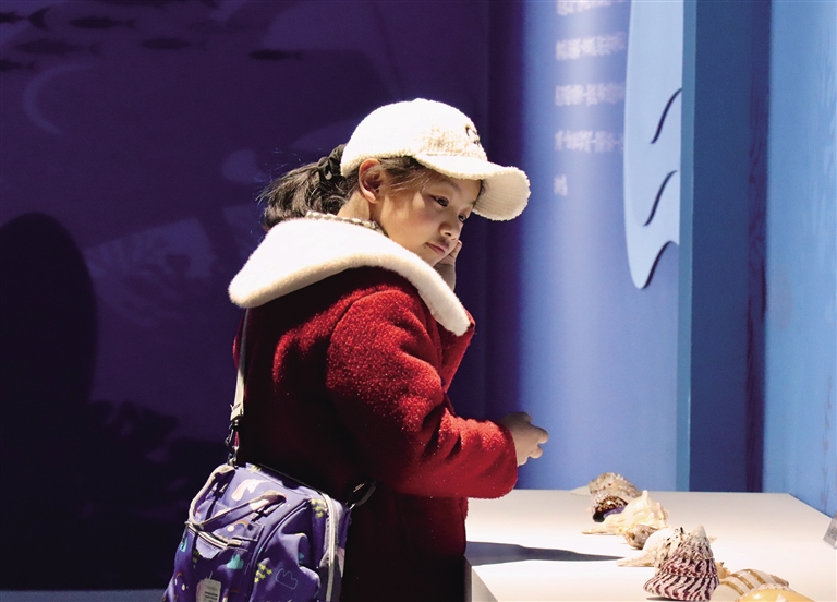 “我从没一次性见过这么多贝壳,太漂亮了。”市民曲珍边说边用手指轻轻触碰着允许触碰的各类海洋贝壳,细细感受着贝类的纹理和质地。“这次展览不仅让我增长了见识,还让我对海洋生物产生了更浓厚的兴趣,这周末我要带朋友一起再来看看。”