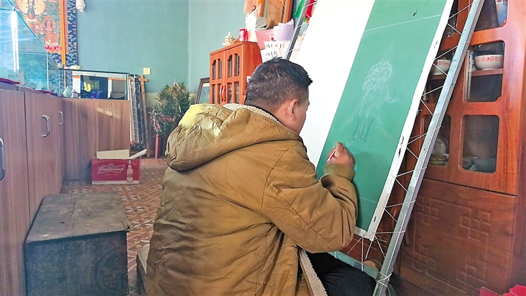 “那段时间是最难熬的,每天睁开眼除了吃饭,其他时间都在画画。”洛追告诉记者,当他真正开始学习时,才深刻体会到要想成为唐卡手艺人,需要付出更多努力。“也曾想过放弃,但还是咬咬牙坚持了下来。”说到这里,洛追有些腼腆地笑了笑。