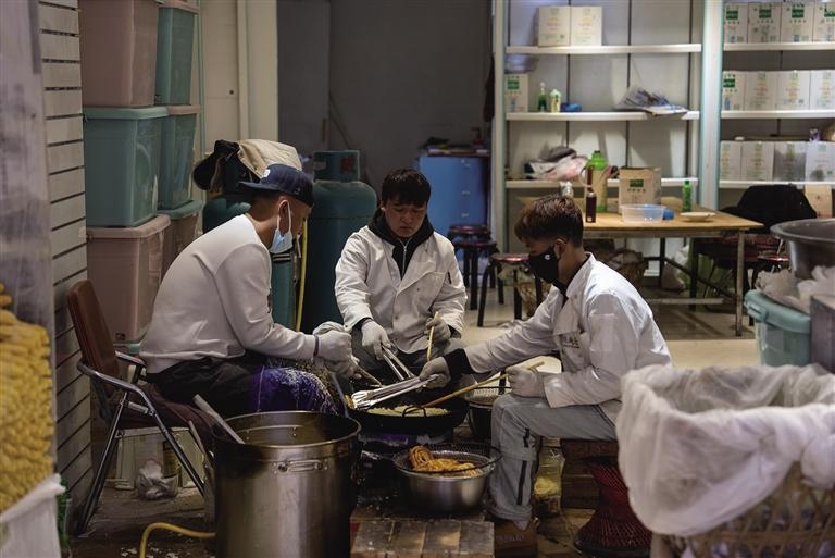 第一块卡赛不仅炸出了好寓意,也炸出了大家的安心。索朗说:“出锅的第一块卡赛如果是颜色均匀靓丽且香酥的话,寓意着今天的卡赛会‘听话’,炸出来会很好看。”索朗所说的“听话”,其实是油温始终控制在七成热状态,不会炸糊也不会翻涌。