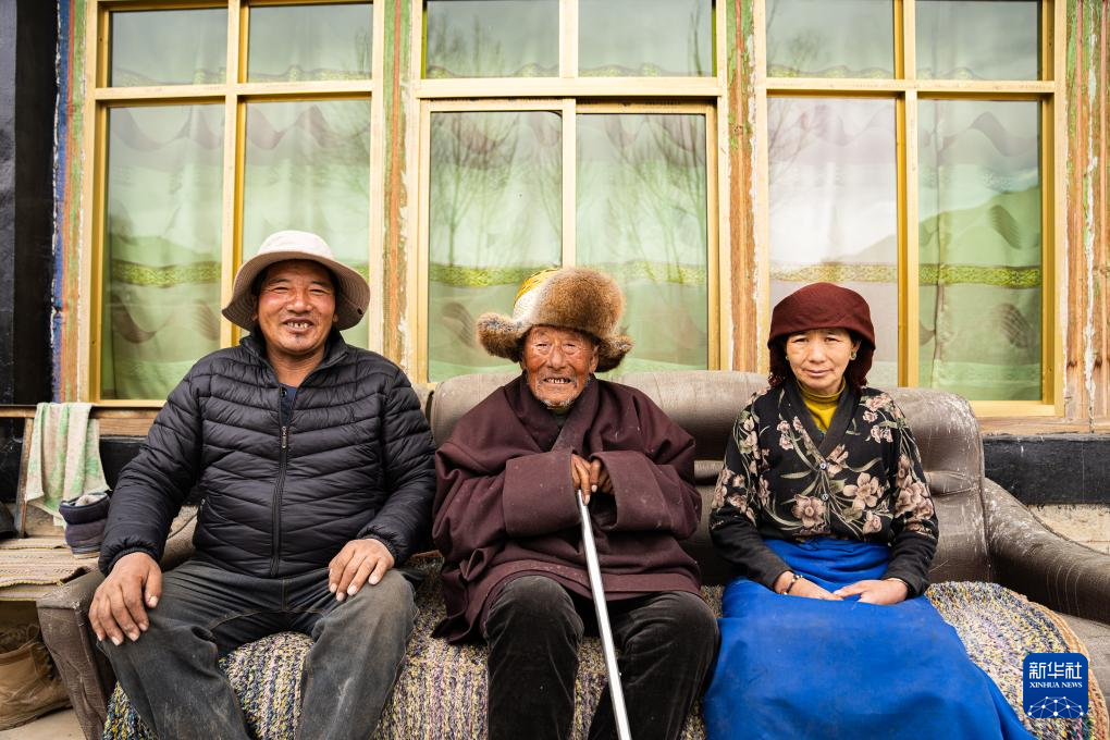 索扎老人和家人合影(3月20日摄)。新华社记者 丁增尼达 摄