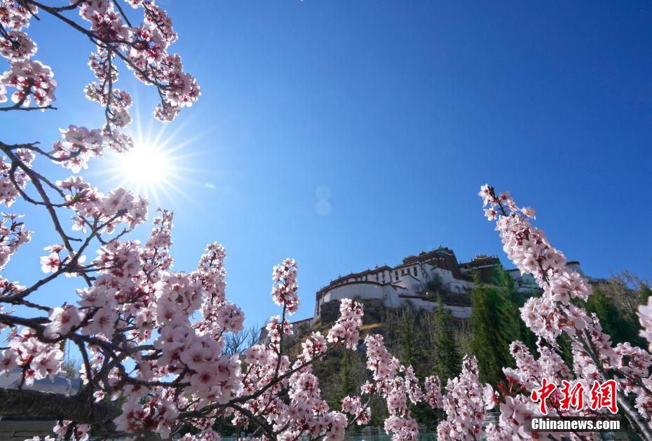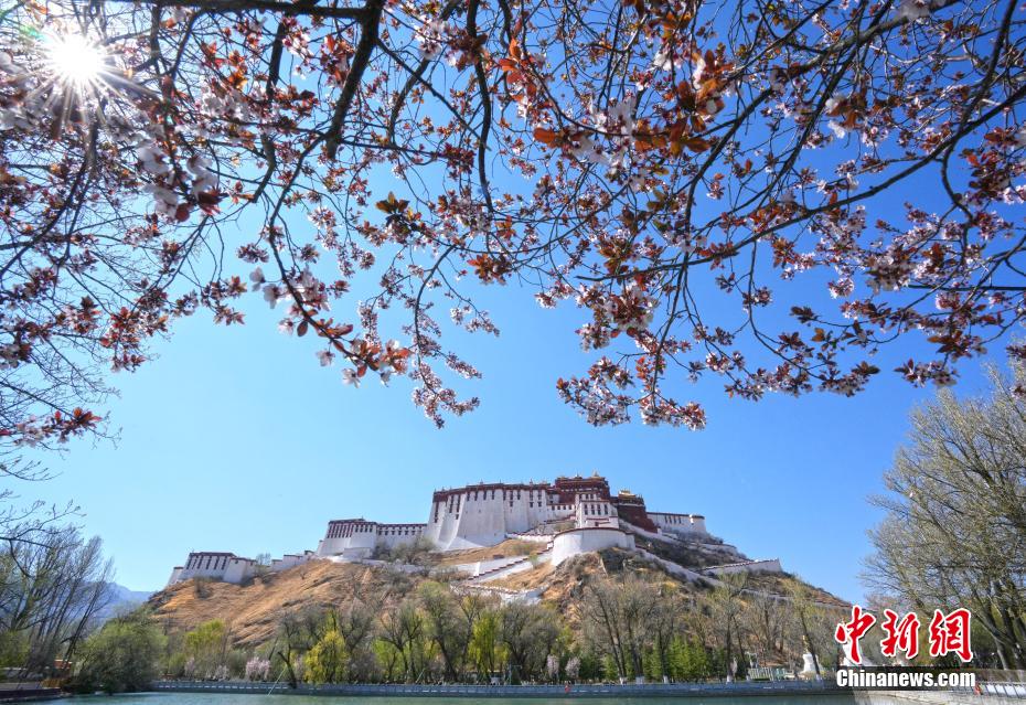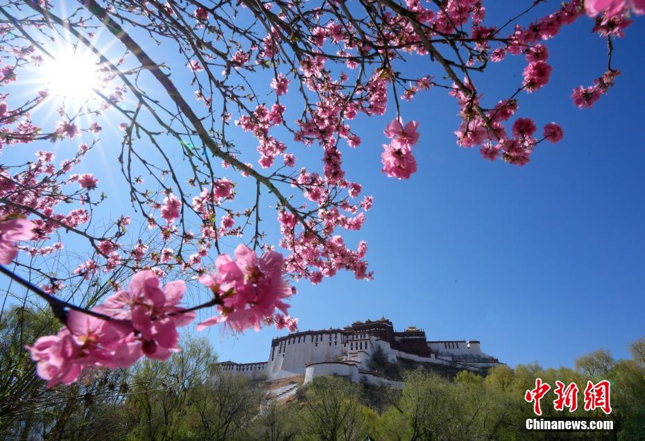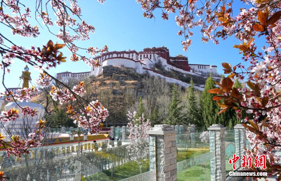 4月1日,随着气温回暖,西藏拉萨春意盎然,布达拉宫脚下春花绽放。中新社记者 李林 摄
