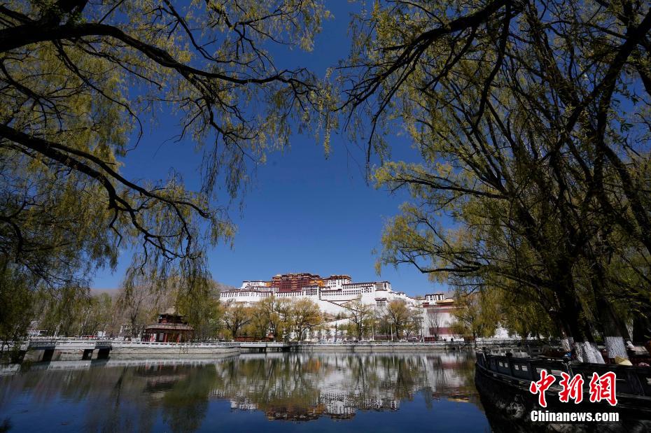 4月1日,随着气温回暖,西藏拉萨春意盎然,布达拉宫脚下柳树吐绿。中新社记者 李林 摄