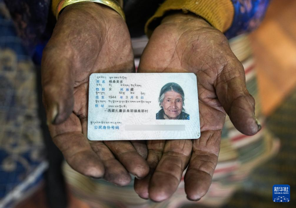 这是格桑美多老人的身份证(3月12日摄)。新华社记者 晋美多吉 摄