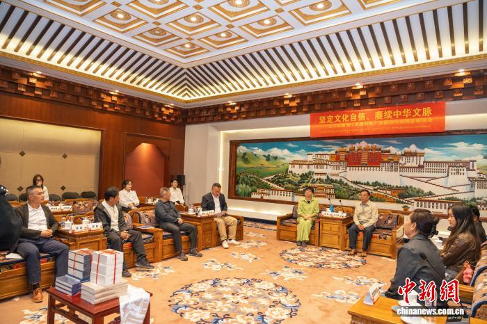 图为8月27日,中国华夏文化遗产基金会向西藏博物馆捐赠《文成公主》连环画等作品现场。(主办方供图)