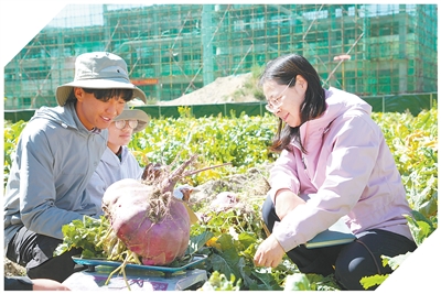 拉萨河畔,晨雾未散,曲水才纳国家现代农业示范区里一派丰收景象,一颗颗芜菁大如篮球。中国科学院青藏高原研究所副研究员姜丽丽双手托住其中一颗直径近30厘米的芜菁,激动地说:“没想到能长这么大!”