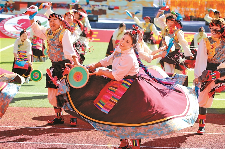 开幕式上的群众游行方队。记者 平措朗加 温凯 摄
