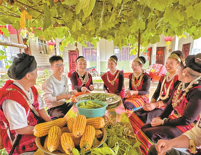 林芝市察隅县下察隅镇新村驻村干部入户到当地僜人群众家中,轻松愉快地拉家常。记者 白玛泽旺 次仁平措 摄