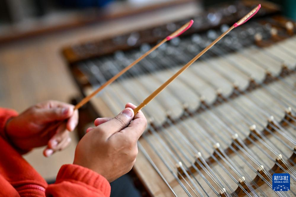 2025年10月11日,达瓦次仁在练习演奏扬琴。