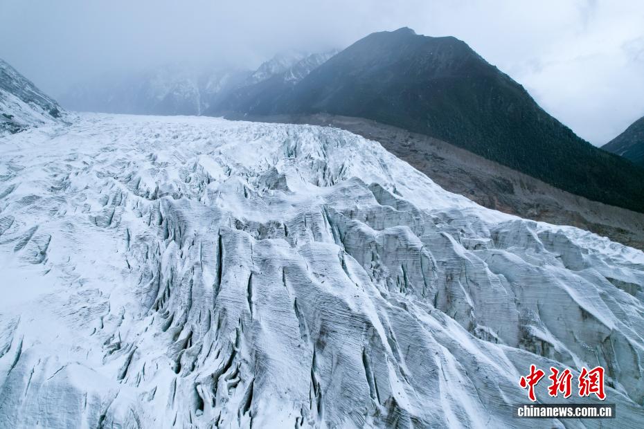 西藏依嘎冰川位于那曲市嘉黎县尼屋乡依嘎村,地处东念青唐古拉山脉深处,是那曲与林芝的交界地带。据悉,依嘎冰川主峰海拔6600米,冰舌末端海拔约4000米,落差达2600米。近日,中新网记者自驾途经依嘎冰川看到,周边山势陡峭、险峻,植被丰富,此外该冰川还拥有冰瀑布以及清晰的冰川纹路等,十分壮阔。图为10月17日,依嘎冰川的冰川纹路。江飞波 摄