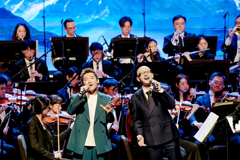 音乐会的叙事不仅关乎历史,更着眼于当下蓬勃发展的新西藏。诗朗诵《我来了,西藏》以其作者——从江南水乡援藏留藏的干部、鲁迅文学奖获得者陈人杰的亲身经历为底色,由濮存昕、温玉娟两位表演艺术家深情演绎,道出了无数建设者对这片土地的眷恋。而由援藏干部、北京科技大学副校长郑安阳与藏族青年歌手露丹卓玛共同演唱的《老西藏》,则是一次深刻的精神接力,深情讴歌了“老西藏精神”。