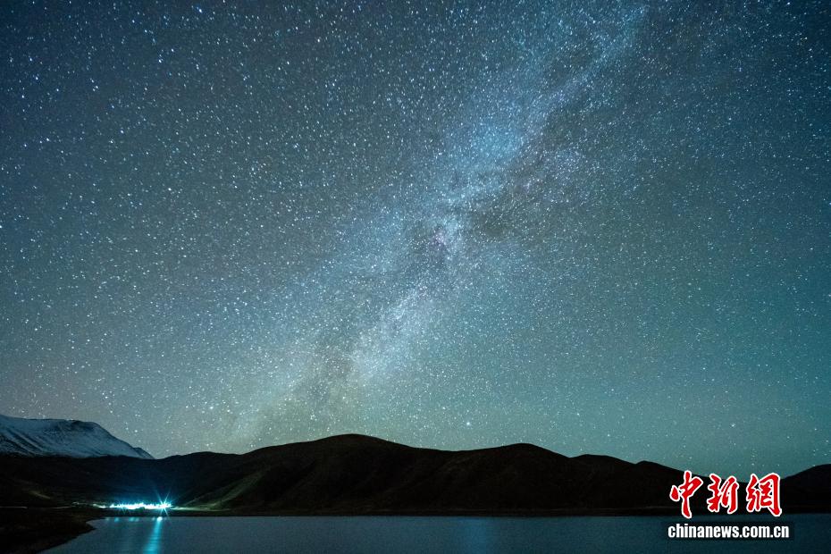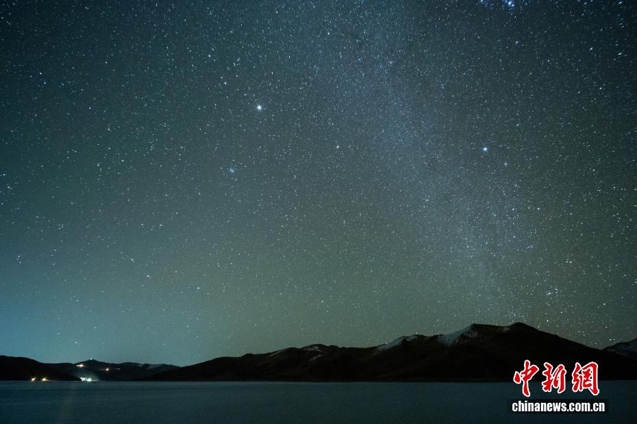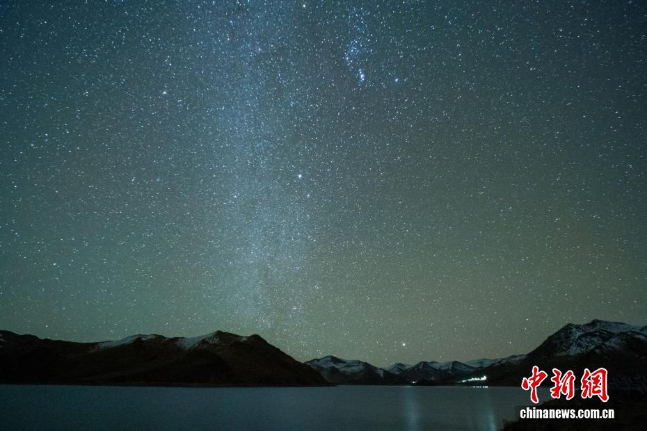 西藏羊卓雍错简称羊湖,藏语意为“碧玉湖”,湖面海拔4400多米,是西藏三大“圣湖”之一。近日,今年的狮子座流星雨达到峰值,每小时约能看到15颗流星。中新网记者在羊湖畔拍摄到初冬的羊湖银河及狮子座流星划过高原夜空等画面。图为11月17日凌晨,初冬的羊湖银河风光。江飞波 摄